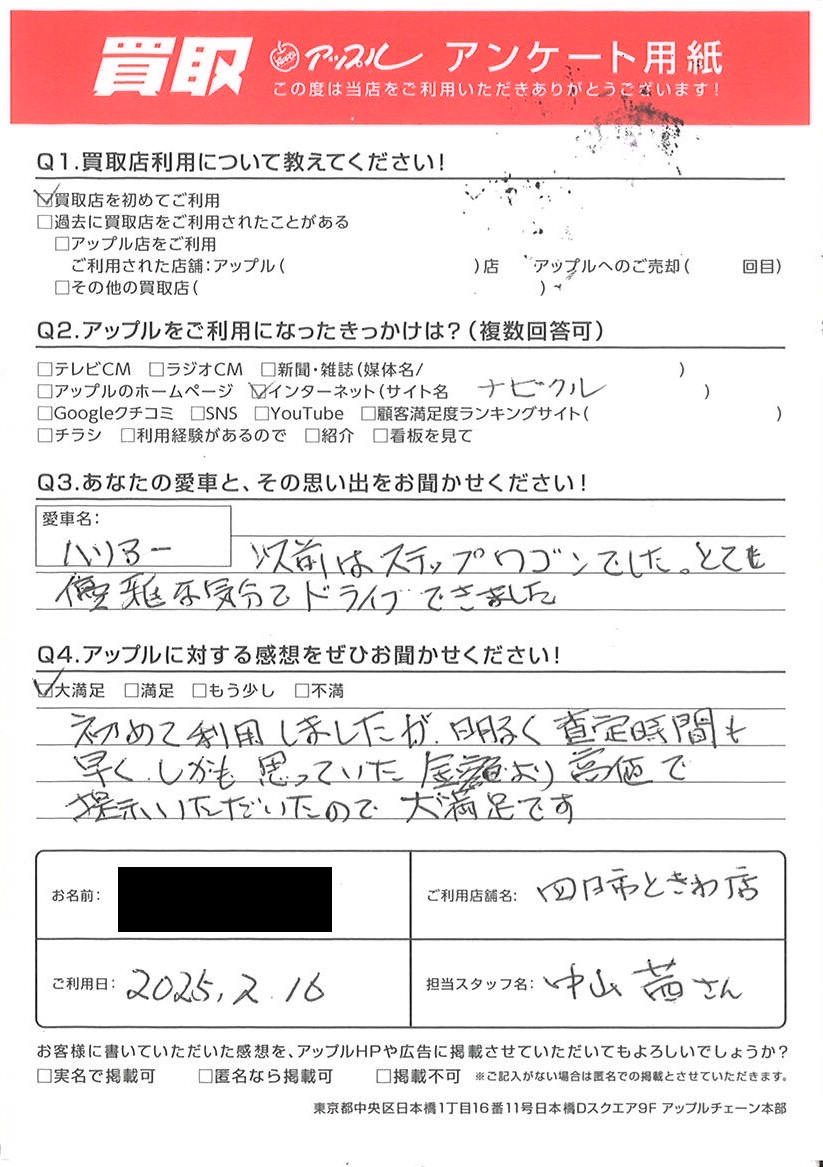 K様  車名:トヨタ ハリアー (H25年12月~のハイブリッド含む)