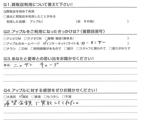 お車のご相談・ 査定だけでもOK! カンタン 入力 30秒 アップルがブランド買取始めました! お電話でも受付中! 受付時間10:00 ~ 18:30 0120-174-177 お車のご相談・ 査定だけでもOK! カンタン 入力 30秒 アップルがブランド買取始めました! お電話でも受付中! 受付時間10:00 ~ 18:30 0120-174-177 アップルがブランド買取始めました! お電話でも受付中! 受付時間10:00 ~ 18:30 0120-174-177 店舗情報 在庫車 スタッフ紹介 ブログ お客様の声 キャンペーン お得 無料査定 click お客様の声 ご記入日: 2017/05/15 K様 愛車:キューブ希望金額で買取してくれた。担当:中瀬 前へ 次へ お客様の声一覧を見る