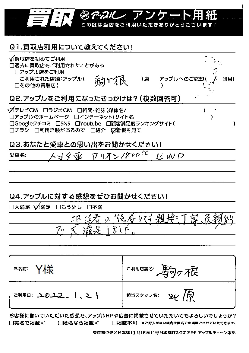担当者の態度とても親接、丁寧、良親的で大満足しました。