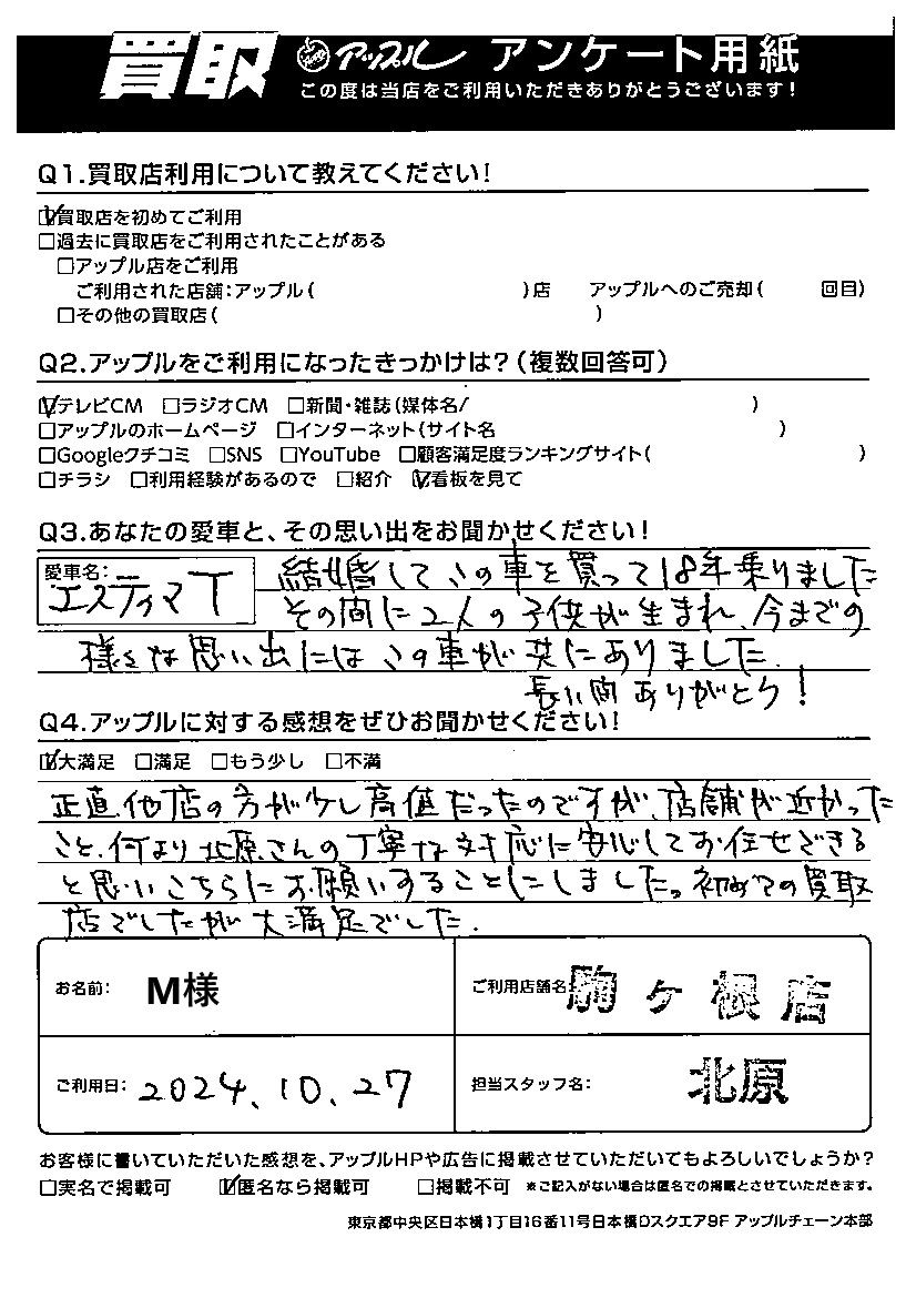 正直他社の方が少し高値だったのですが、店舗が近かったこと、何より北原さんの丁寧な対応に