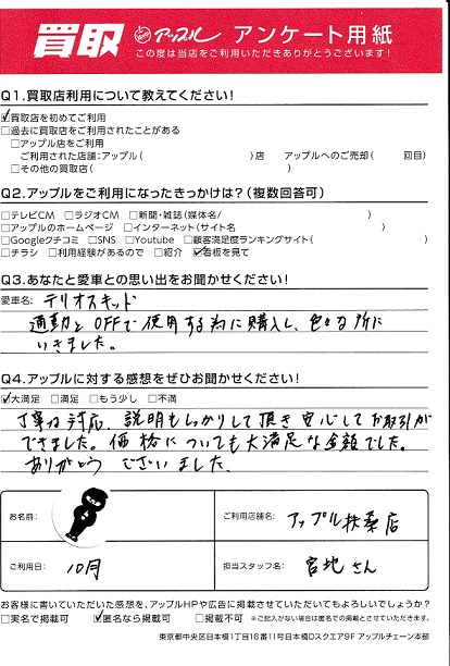 丁寧な対応、説明もしっかりして頂き安心してお取引ができました。価格についても大満足な金額でした。ありがとうございました。