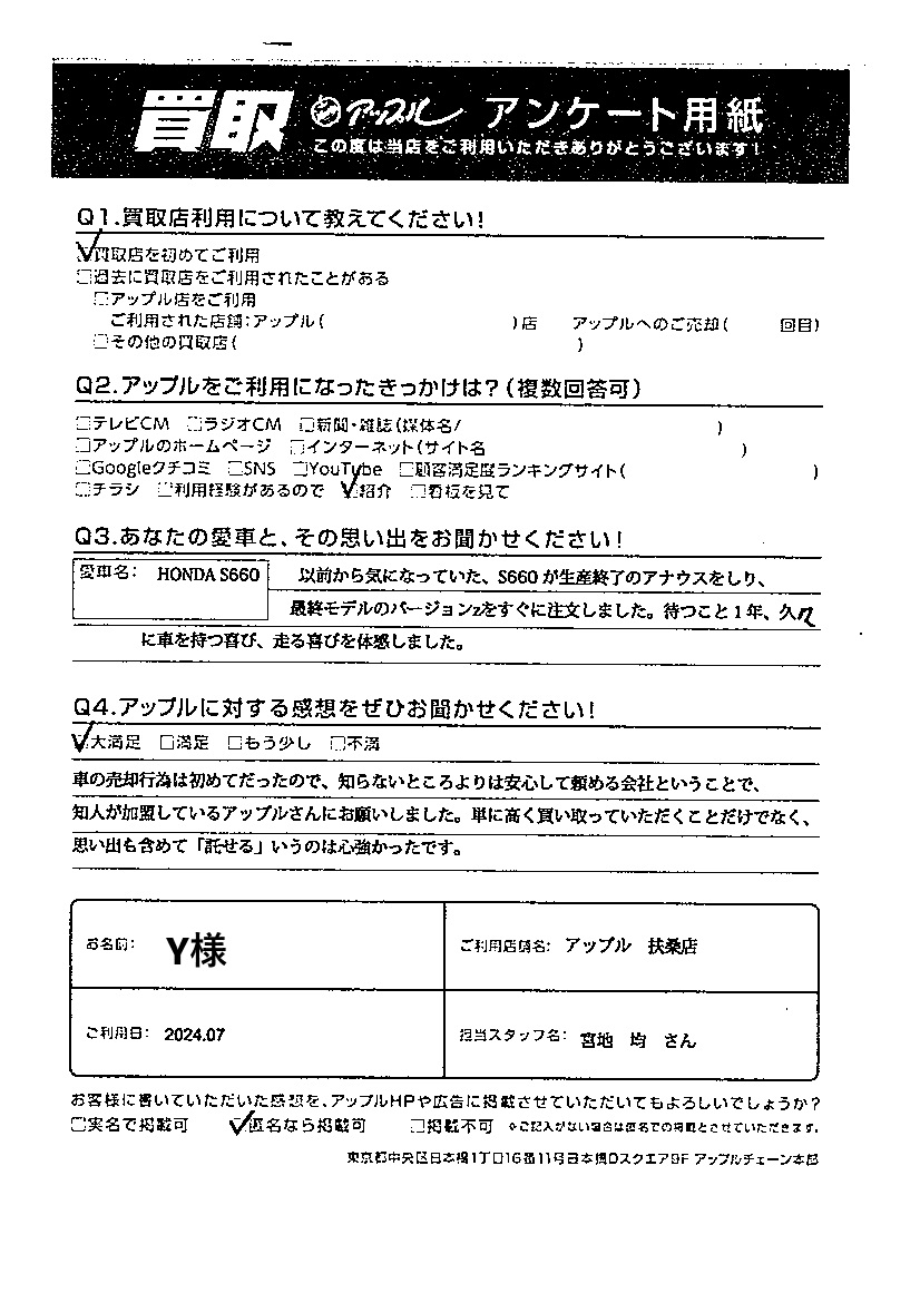 S.Y様  車名:ホンダ S660
