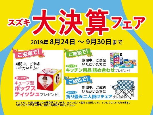お車のご相談・ 査定だけでもOK! カンタン 入力 30秒 アップルがブランド買取始めました! お電話でも受付中! 受付時間09:30 ~ 18:00 0565-53-8800 お車のご相談・ 査定だけでもOK! カンタン 入力 30秒 アップルがブランド買取始めました! お電話でも受付中! 受付時間09:30 ~ 18:00 0565-53-8800 アップルがブランド買取始めました! お電話でも受付中! 受付時間09:30 ~ 18:00 0565-53-8800 店舗情報 在庫車 スタッフ紹介 ブログ お客様の声 キャンペーン お得 無料査定 click [ つぶやき ] 2019/08/25 (日) 13:43 スズキ大決算フェア開催中! こんちゃっす!アップル豊田南店・スズキアリーナ豊田南店のブログ担当 ジュンジェです♪只今、アップルのありがとうキャンペーンと同時進行で、スズキの大決算フェアを開催しております♪すごいっしょ!ご来場いただくだけで、何かいいことがありそうです!!以上です♪ 2019-08-25 13:43:45 新しい記事へ 古い記事へ 最新記事 新春初売り!USトヨタ 2013年モデル シエナ SEが入庫したSE”!!GT-R入庫したSE”!!スバル インプレッサ WRX-STI入庫しました!!レクサスRX500Fパフォーマンス入庫しました!! 店舗情報に戻る 月別アーカイブ 2026年01月(1)2025年10月(1)2025年09月(3)2025年08月(1)2025年07月(2)2025年06月(7)2025年03月(2)2025年01月(4)2024年10月(1)2024年09月(1)2024年08月(5)2024年07月(8)2024年06月(4)2024年04月(7)2024年03月(4)2024年02月(7)2024年01月(11)2023年12月(9)2023年11月(15)2023年10月(4)2023年07月(2)2023年06月(2)2023年05月(9)2023年04月(3)2023年01月(1)2022年12月(1)2022年11月(1)2022年10月(2)2022年09月(4)2022年08月(6)2022年07月(15)2022年06月(4)2022年05月(5)2022年04月(4)2022年01月(2)2021年12月(2)2021年11月(4)2021年09月(3)2021年08月(2)2021年07月(7)2021年06月(12)2021年05月(2)2021年04月(3)2021年03月(3)2021年02月(4)2021年01月(8)2020年12月(6)2020年11月(6)2020年10月(12)2020年09月(21)2020年08月(14)2020年07月(20)2020年06月(13)2020年04月(2)2020年02月(2)2020年01月(4)2019年12月(4)2019年11月(2)2019年10月(1)2019年09月(2)2019年08月(5)