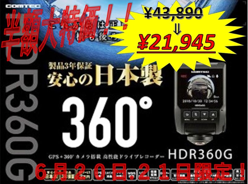 ”コムテック”の360°撮影できるドライブレコーダーHDR360Gを半額にします★