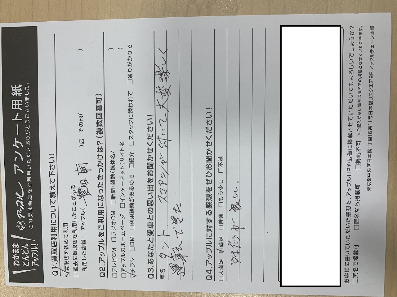 お車のご相談・ 査定だけでもOK! カンタン 入力 30秒 アップルがブランド買取始めました! お電話でも受付中! 受付時間09:30 ~ 18:00 0565-53-8800 お車のご相談・ 査定だけでもOK! カンタン 入力 30秒 アップルがブランド買取始めました! お電話でも受付中! 受付時間09:30 ~ 18:00 0565-53-8800 アップルがブランド買取始めました! お電話でも受付中! 受付時間09:30 ~ 18:00 0565-53-8800 店舗情報 在庫車 スタッフ紹介 ブログ お客様の声 キャンペーン お得 無料査定 click お客様の声 ご記入日: 2021/09/30 H/N様 車名:ダイハツ タント 対応が良い 前へ 次へ お客様の声一覧を見る