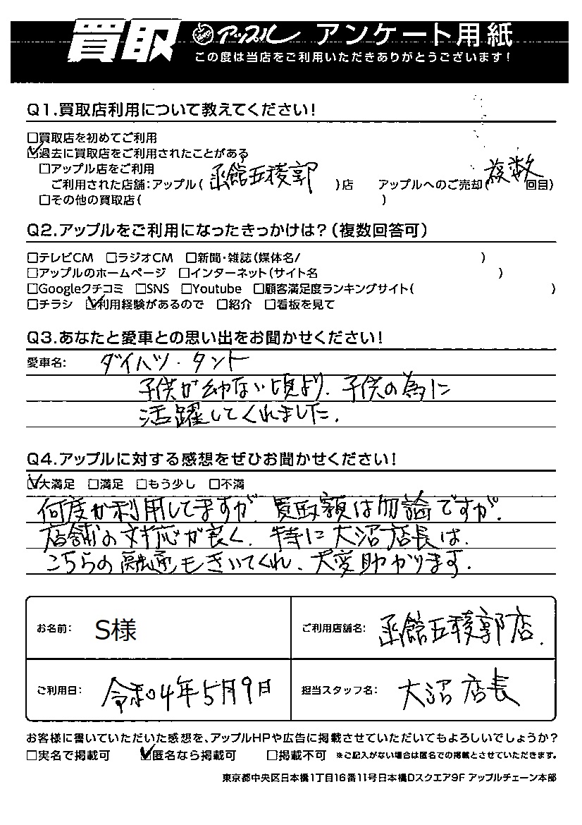 S様 車名:ダイハツ タント