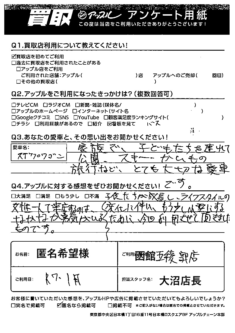 家族で、子どもたちを連れて公園、スキー、かいもの、旅行など、とても大切な愛車です。