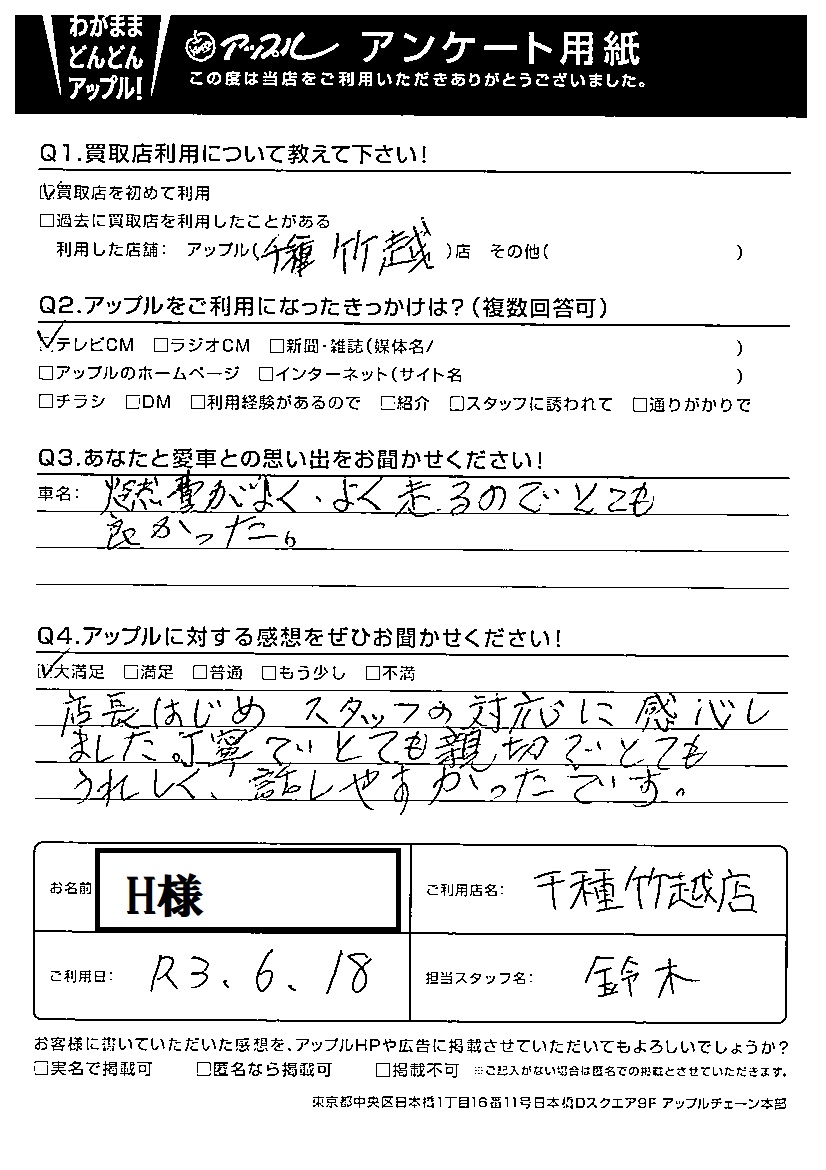 丁寧でとても親切でとてもうれしく、話しやすかったです。