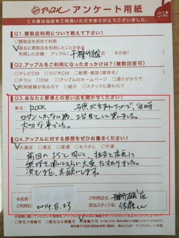 前回のISと同じく担当と店長に無理を聞いてもらい大変助かりました。次もまたお願いします。