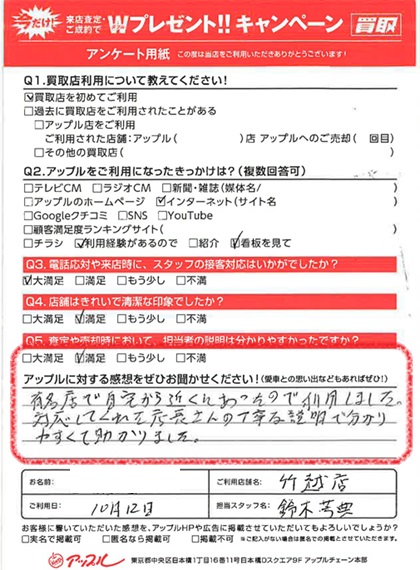 お車のご相談・ 査定だけでもOK! カンタン 入力 30秒 アップルがブランド買取始めました! お電話でも受付中! 受付時間9:30~18:30 052-711-8400 お車のご相談・ 査定だけでもOK! カンタン 入力 30秒 アップルがブランド買取始めました! お電話でも受付中! 受付時間9:30~18:30 052-711-8400 アップルがブランド買取始めました! お電話でも受付中! 受付時間9:30~18:30 052-711-8400 店舗情報 在庫車 スタッフ紹介 ブログ お客様の声 キャンペーン 無料査定 click お客様の声 ご記入日: 2023/10/12 K様 車名:ホンダ N-BOX 満足度★★★★有名店で自宅から近くにあったので利用しました。対応してくれた店長さんの丁寧な説明で分かりやすくて助かりました。 前へ 次へ お客様の声一覧を見る