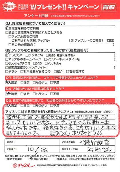 他店はすぐ売った方がいいとすごく粘られたので。