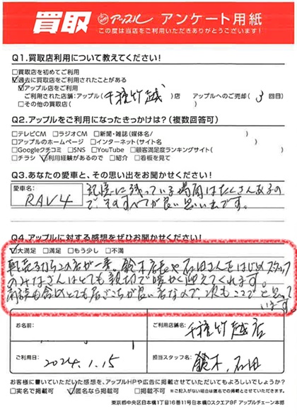 I様 車名:トヨタ RAV4(R04年10月~RAV4 PHV含む)