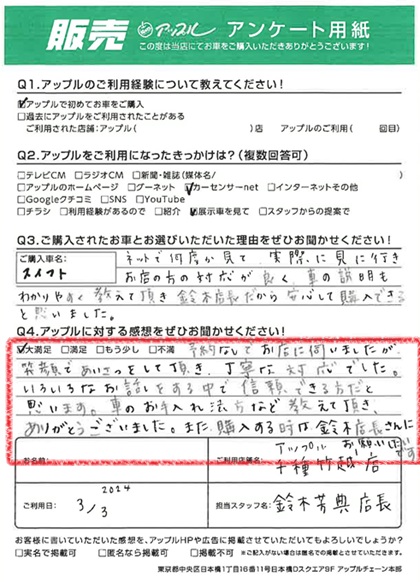 また購入する時は、鈴木店長さんにお願いしたいです。