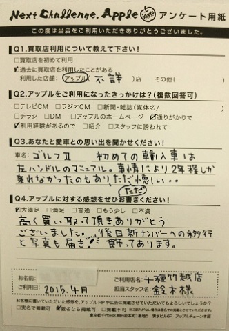 高く買い取って頂きありがとうございました。