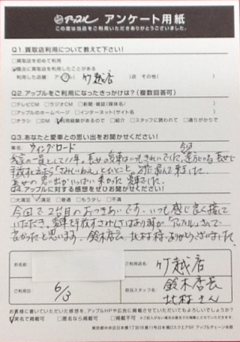 いつも感じ良く接していただき、愛車を手放すさみしさはありますが、「アップル」さんで良かったと思います。