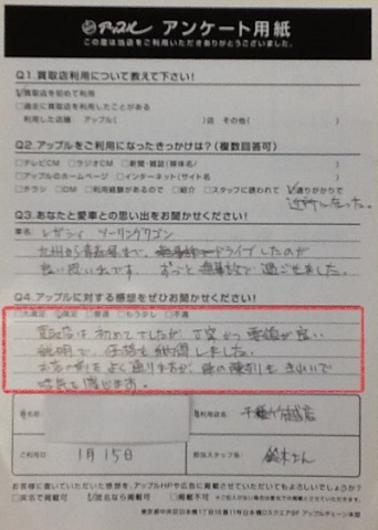 買取店は初めてでしたが、丁寧かつ要領が良い説明で、価格も納得しました。お店の前をよく通りますが、車の陳列もきれいで活気を感じます。