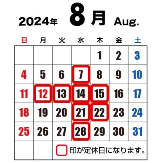 8月12日(月)から8月15日(木)まで夏季休業日となります。