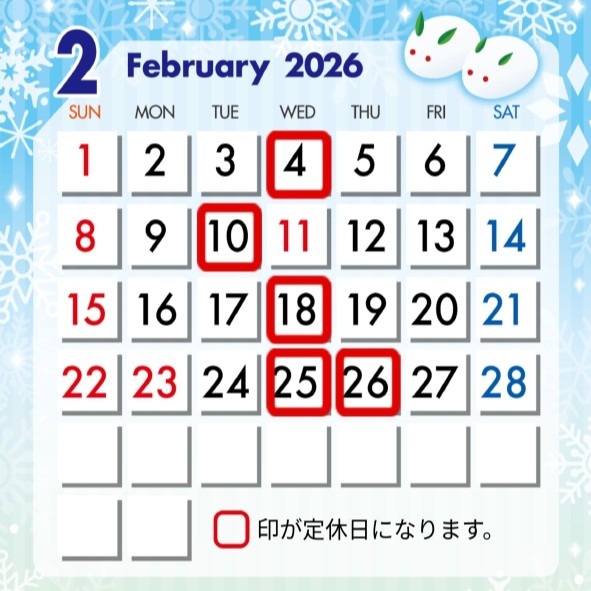 2月11日(水)は祝日のため通常営業いたします。
