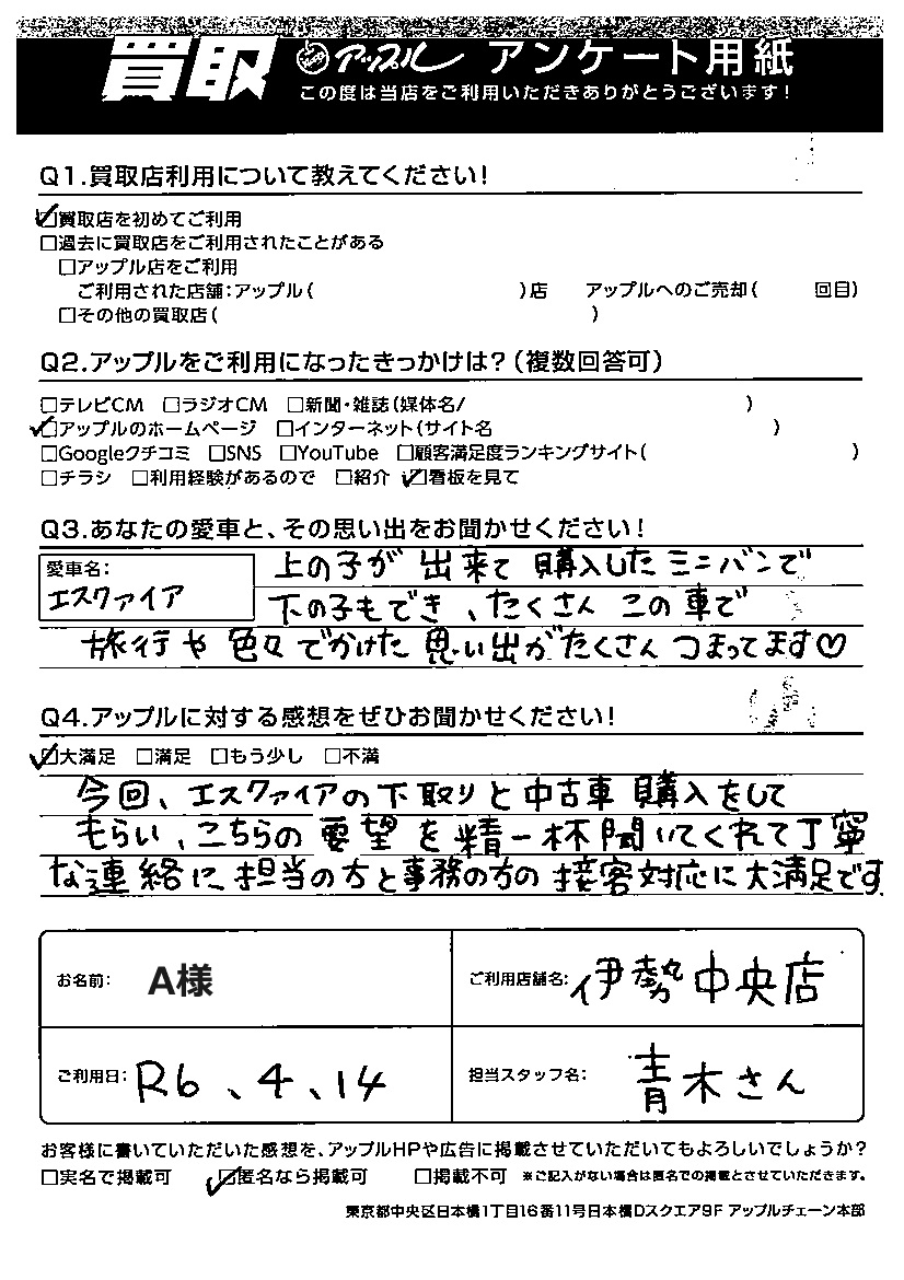 ご利用日:R6年4月14日 担当:青木