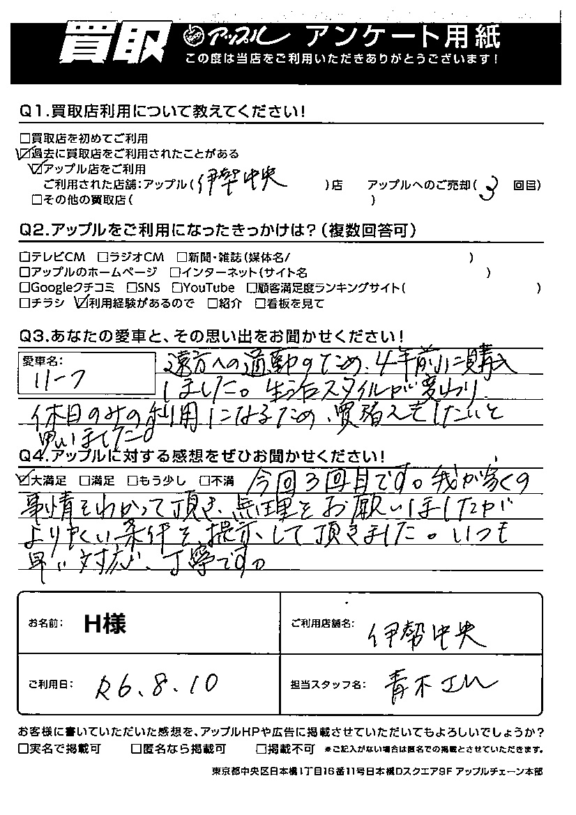 ご利用日:R6年8月10日 担当:青木