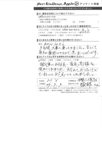 誠実に相談・査定商談を進めてくれました。初めてだったけどていねいに対応してくれました