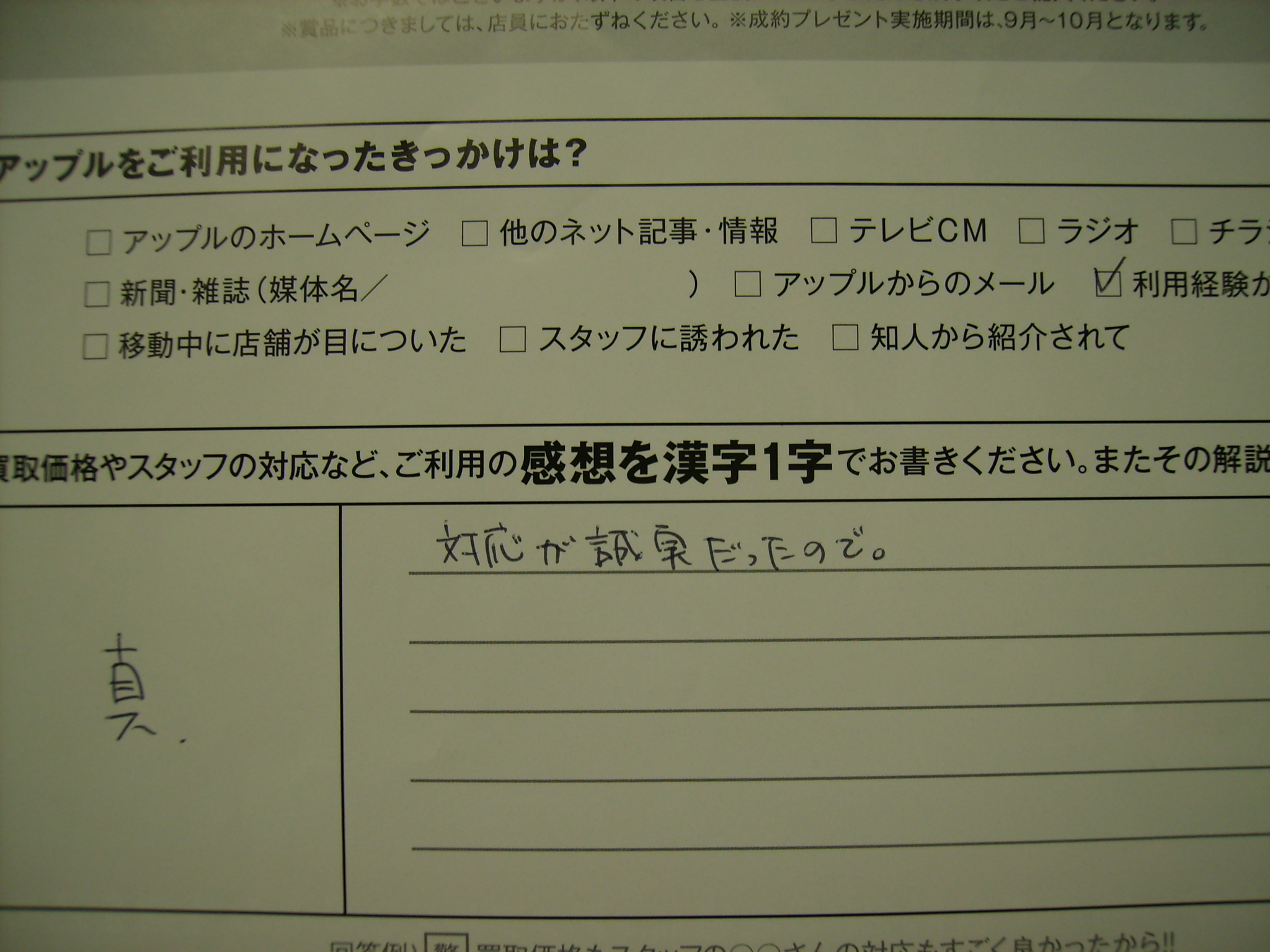 お車のご相談・ 査定だけでもOK! カンタン 入力 30秒 アップルがブランド買取始めました! お電話でも受付中! 受付時間10:00 ~ 17:00 043-268-8700 お車のご相談・ 査定だけでもOK! カンタン 入力 30秒 アップルがブランド買取始めました! お電話でも受付中! 受付時間10:00 ~ 17:00 043-268-8700 アップルがブランド買取始めました! お電話でも受付中! 受付時間10:00 ~ 17:00 043-268-8700 店舗情報 在庫車 スタッフ紹介 ブログ お客様の声 キャンペーン 無料査定 click お客様の声 ご記入日: 2009/09/27 相田様 対応が誠実でした。 前へ 次へ お客様の声一覧を見る