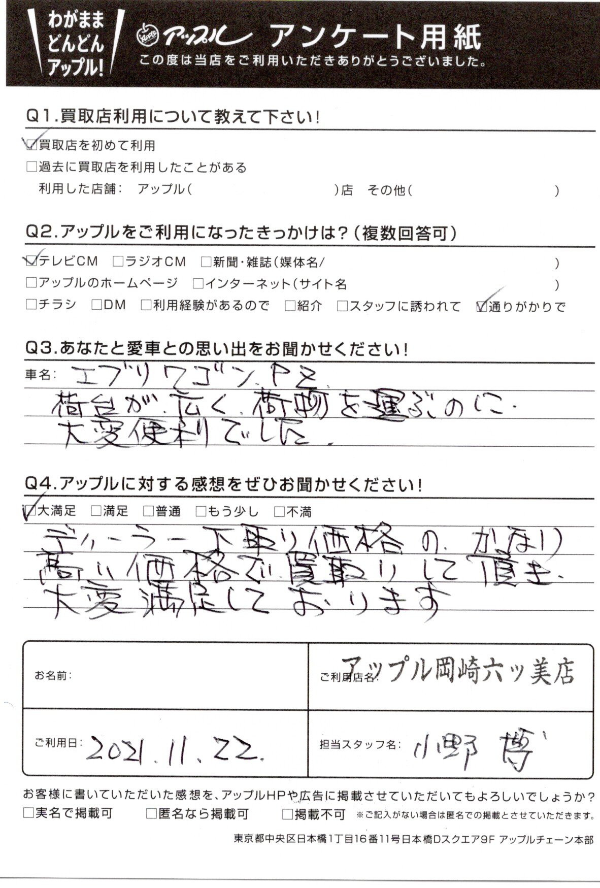 お車のご相談・ 査定だけでもOK! カンタン 入力 30秒 アップルがブランド買取始めました! お電話でも受付中! 受付時間10:00 ~ 19:00 (第4・第5月曜日は18:00閉店の場合あり) 0564-58-1700 お車のご相談・ 査定だけでもOK! カンタン 入力 30秒 アップルがブランド買取始めました! お電話でも受付中! 受付時間10:00 ~ 19:00 (第4・第5月曜日は18:00閉店の場合あり) 0564-58-1700 アップルがブランド買取始めました! お電話でも受付中! 受付時間10:00 ~ 19:00 (第4・第5月曜日は18:00閉店の場合あり) 0564-58-1700 店舗情報 在庫車 スタッフ紹介 ブログ お客様の声 キャンペーン 無料査定 click お客様の声 ご記入日: 2021/11/22 愛知県 匿名希望様 車名:スズキ エブリイワゴン ディーラー下取り価格のかなり高い価格で買取して頂き大変満足しております。 前へ 次へ お客様の声一覧を見る