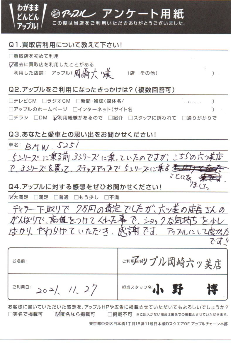 お車のご相談・ 査定だけでもOK! カンタン 入力 30秒 アップルがブランド買取始めました! お電話でも受付中! 受付時間10:00 ~ 19:00 (第4・第5月曜日は18:00閉店の場合あり) 0564-58-1700 お車のご相談・ 査定だけでもOK! カンタン 入力 30秒 アップルがブランド買取始めました! お電話でも受付中! 受付時間10:00 ~ 19:00 (第4・第5月曜日は18:00閉店の場合あり) 0564-58-1700 アップルがブランド買取始めました! お電話でも受付中! 受付時間10:00 ~ 19:00 (第4・第5月曜日は18:00閉店の場合あり) 0564-58-1700 店舗情報 在庫車 スタッフ紹介 ブログ お客様の声 キャンペーン 無料査定 click お客様の声 ご記入日: 2021/11/27 愛知県 匿名希望様 車名:BMW 5シリーズ ディラー下取りで7万円の査定でしたが、六ツ美の店長さんのがんばりで、高値をつけてくれた事で、ショックな気持ちを少しばかりやわらげていただき感謝です。アップルにして良かったです。 前へ 次へ お客様の声一覧を見る