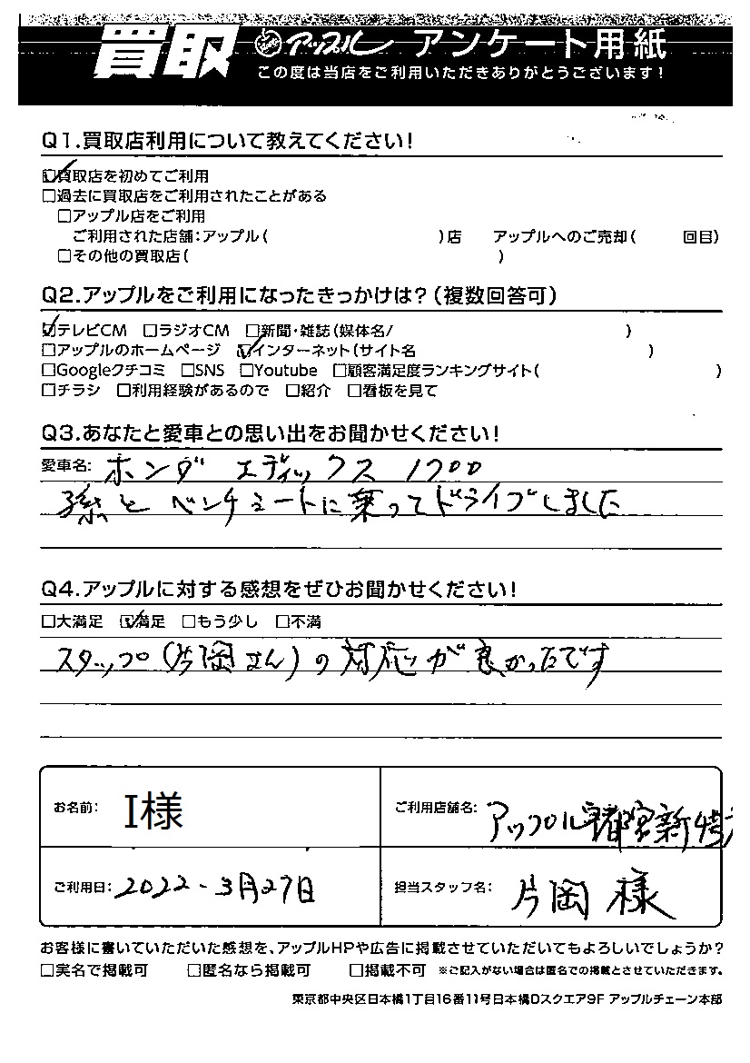 I様 車名:ホンダ エディックス