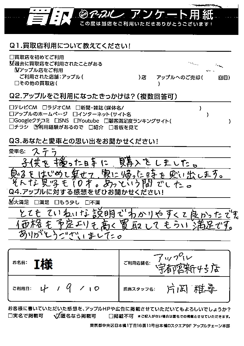 とてもていねいな説明でわかりやすく良かったです。価格も予定よりも高く買取してもらい満足です。ありがとうございました。