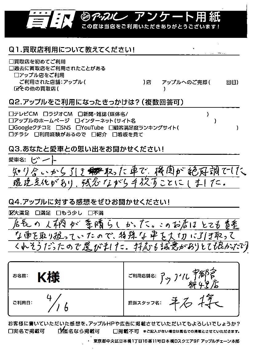 取り扱っていたので、特殊な車を大切に引き取ってくれそう