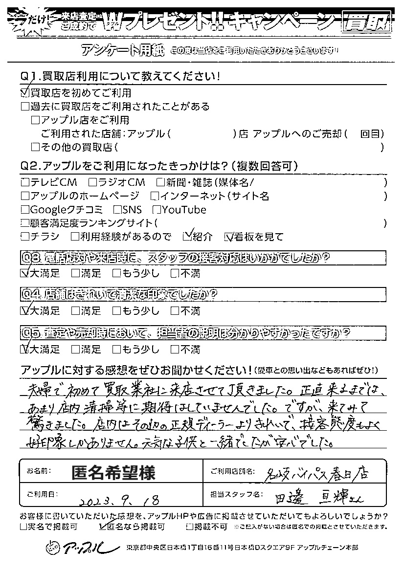Q電話対応や来店時に、スタッフの接客対応はいかがでしたか?