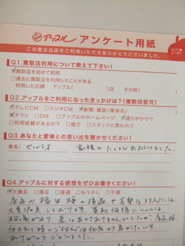 お車のご相談・ 査定だけでもOK! カンタン 入力 30秒 アップルがブランド買取始めました! お電話でも受付中! 受付時間10:00 ~ 18:30 0120-978-553 お車のご相談・ 査定だけでもOK! カンタン 入力 30秒 アップルがブランド買取始めました! お電話でも受付中! 受付時間10:00 ~ 18:30 0120-978-553 アップルがブランド買取始めました! お電話でも受付中! 受付時間10:00 ~ 18:30 0120-978-553 店舗情報 在庫車 スタッフ紹介 ブログ お客様の声 キャンペーン お得 無料査定 click お客様の声 ご記入日: 2014/08/10 K様 ★愛車との思い出(セルシオ)家族とたくさん出掛けました。★アップルに対する感想店長の福田様の接遇や真摯な対応には、大変満足しております。買取価格については、相場があり、差はあまりありませんでしたが、店長様、他スタッフ様のご対応は他店より良かったです。ありがとうございました。 前へ 次へ お客様の声一覧を見る
