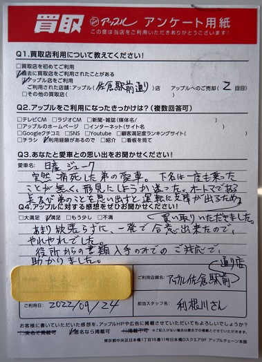 オートマである点、弟のことを思い出すと運転に支障が出るため買取いただきました。