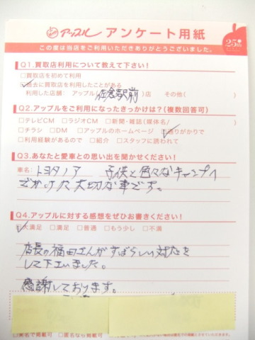 お車のご相談・ 査定だけでもOK! カンタン 入力 30秒 アップルがブランド買取始めました! お電話でも受付中! 受付時間10:00 ~ 18:30 0120-978-553 お車のご相談・ 査定だけでもOK! カンタン 入力 30秒 アップルがブランド買取始めました! お電話でも受付中! 受付時間10:00 ~ 18:30 0120-978-553 アップルがブランド買取始めました! お電話でも受付中! 受付時間10:00 ~ 18:30 0120-978-553 店舗情報 在庫車 スタッフ紹介 ブログ お客様の声 キャンペーン お得 無料査定 click お客様の声 ご記入日: 2014/09/20 I様 ★愛車との思い出子供と色々なキャンプへでかけた大切な車です。★アップルに対する感想店長の福田さんがすばらしい対応をして下さいました。感謝しております。 前へ 次へ お客様の声一覧を見る