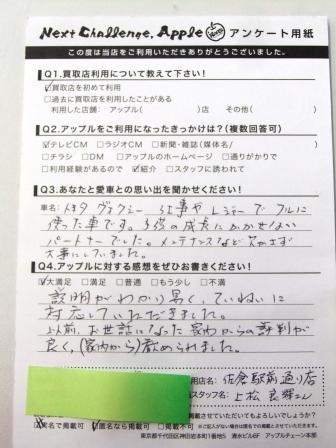 お車のご相談・ 査定だけでもOK! カンタン 入力 30秒 アップルがブランド買取始めました! お電話でも受付中! 受付時間10:00 ~ 18:30 0120-978-553 お車のご相談・ 査定だけでもOK! カンタン 入力 30秒 アップルがブランド買取始めました! お電話でも受付中! 受付時間10:00 ~ 18:30 0120-978-553 アップルがブランド買取始めました! お電話でも受付中! 受付時間10:00 ~ 18:30 0120-978-553 店舗情報 在庫車 スタッフ紹介 ブログ お客様の声 キャンペーン お得 無料査定 click お客様の声 ご記入日: 2015/04/10 I様 ★愛車との思い出(ヴォクシー)仕事やレジャーでフルに使った車です。子供の成長に欠かせないパートナーでした。メンテナンスなど欠かさず大事にしていました。★アップルに対する感想説明がわかり易く丁寧に対応していただきました。以前、お世話になった家内からの評判が良く(家内から)勧められました。 前へ 次へ お客様の声一覧を見る