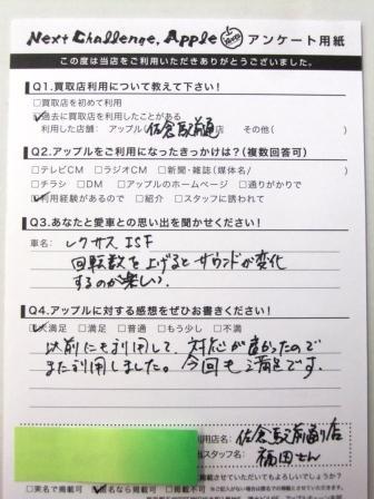 お車のご相談・ 査定だけでもOK! カンタン 入力 30秒 アップルがブランド買取始めました! お電話でも受付中! 受付時間10:00 ~ 18:30 0120-978-553 お車のご相談・ 査定だけでもOK! カンタン 入力 30秒 アップルがブランド買取始めました! お電話でも受付中! 受付時間10:00 ~ 18:30 0120-978-553 アップルがブランド買取始めました! お電話でも受付中! 受付時間10:00 ~ 18:30 0120-978-553 店舗情報 在庫車 スタッフ紹介 ブログ お客様の声 キャンペーン お得 無料査定 click お客様の声 ご記入日: 2015/04/10 A様 ★愛車との思い出(レクサスISF)回転数を上げるとサウンドが変化するのが楽しい。★アップルに対する感想以前にも利用して、対応が良かったのでまた利用しました。今回も満足です。 前へ 次へ お客様の声一覧を見る
