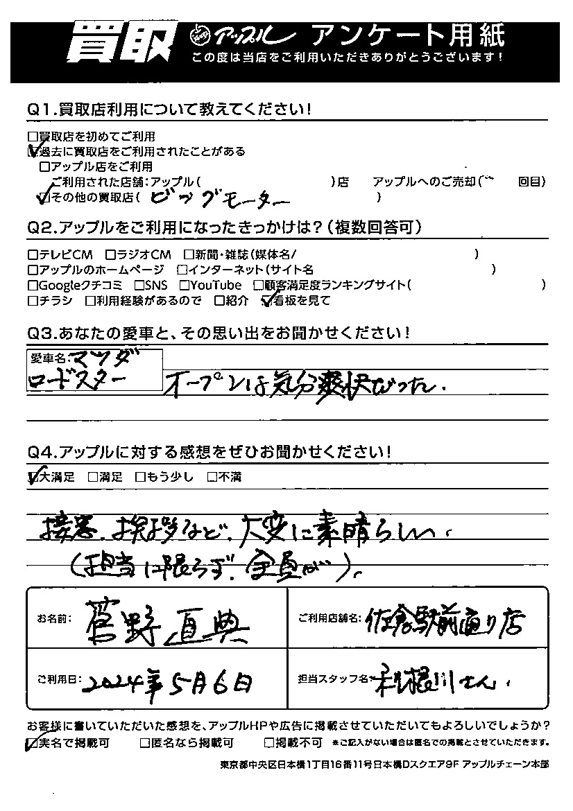 菅野様 車名:マツダ ロードスター