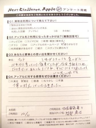 お車のご相談・ 査定だけでもOK! カンタン 入力 30秒 アップルがブランド買取始めました! お電話でも受付中! 受付時間10:00 ~ 18:30 0120-978-553 お車のご相談・ 査定だけでもOK! カンタン 入力 30秒 アップルがブランド買取始めました! お電話でも受付中! 受付時間10:00 ~ 18:30 0120-978-553 アップルがブランド買取始めました! お電話でも受付中! 受付時間10:00 ~ 18:30 0120-978-553 店舗情報 在庫車 スタッフ紹介 ブログ お客様の声 キャンペーン お得 無料査定 click お客様の声 ご記入日: 2015/12/10 S様 ★愛車との思い出(フィット)10年以上乗っていた愛車でしたが、今回手放すことになりました。あちこち汚され、掃除して繰り返したのも良い思い出です。★アップルに対する感想丁寧に対応していただきました。 前へ 次へ お客様の声一覧を見る