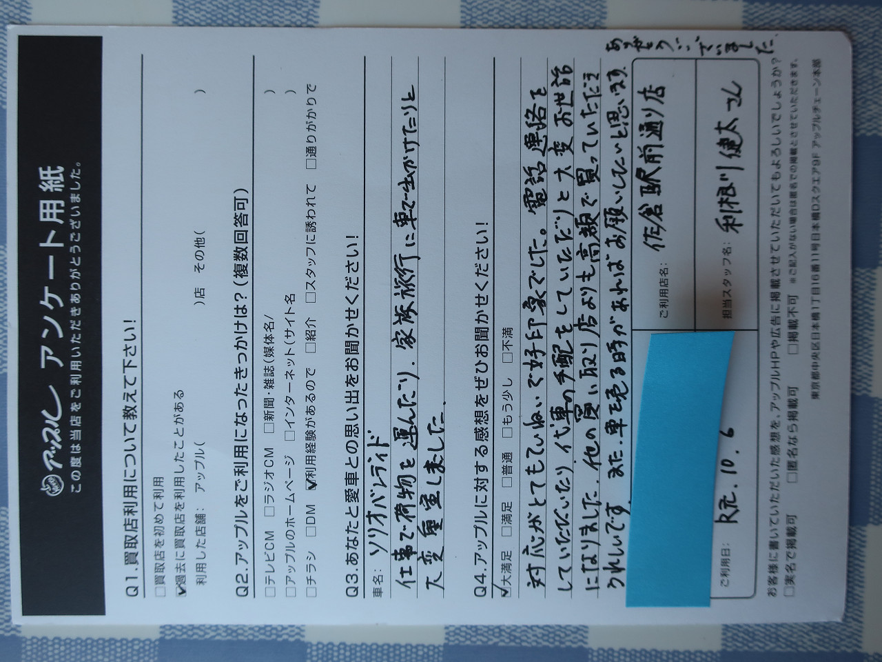 また、車を売る時があればお願いしたいと思います。ありがとうございました。