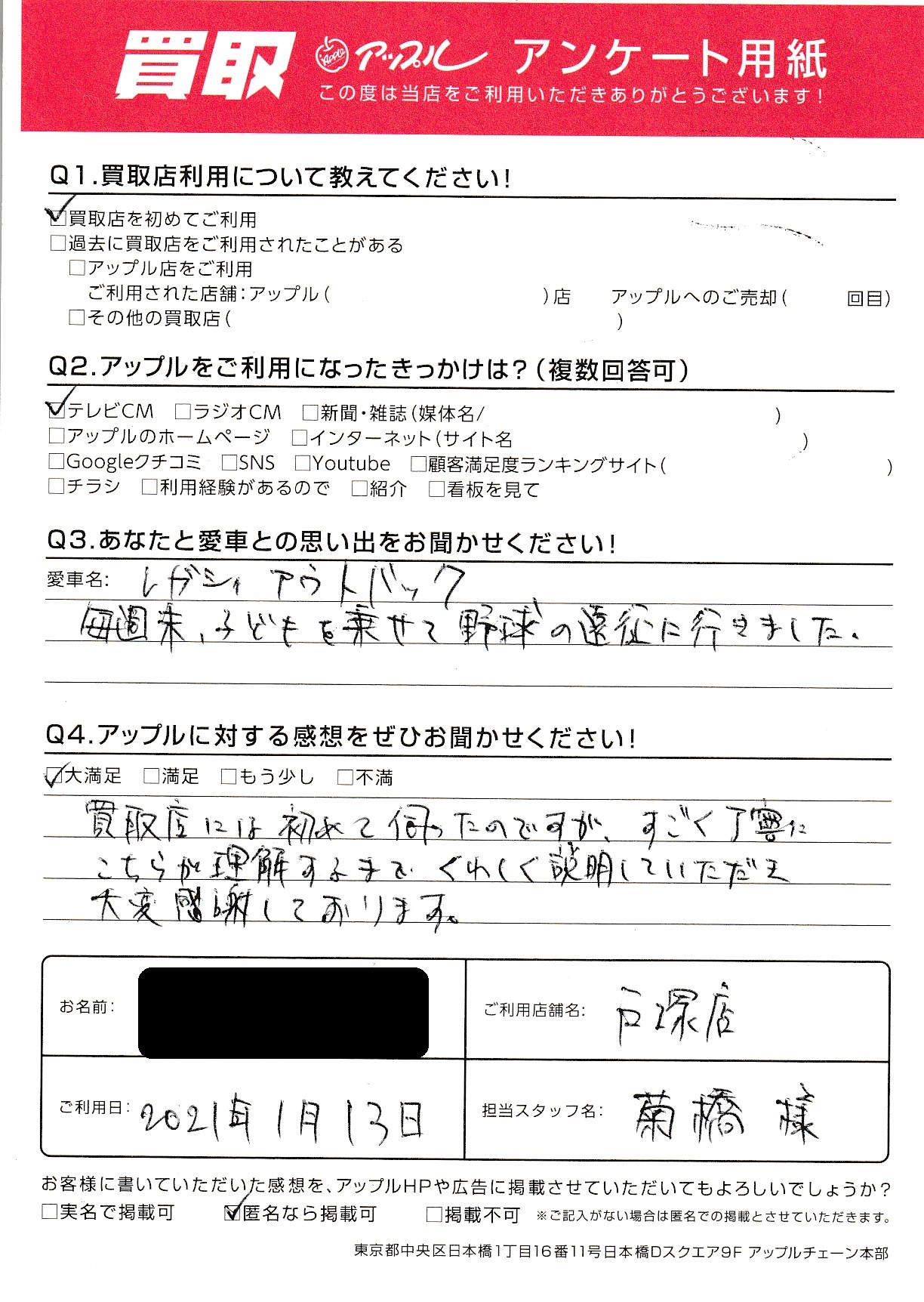 K・H様 車名:スバル レガシィアウトバック(H15年10月~) アウトバック(H15年10月~)