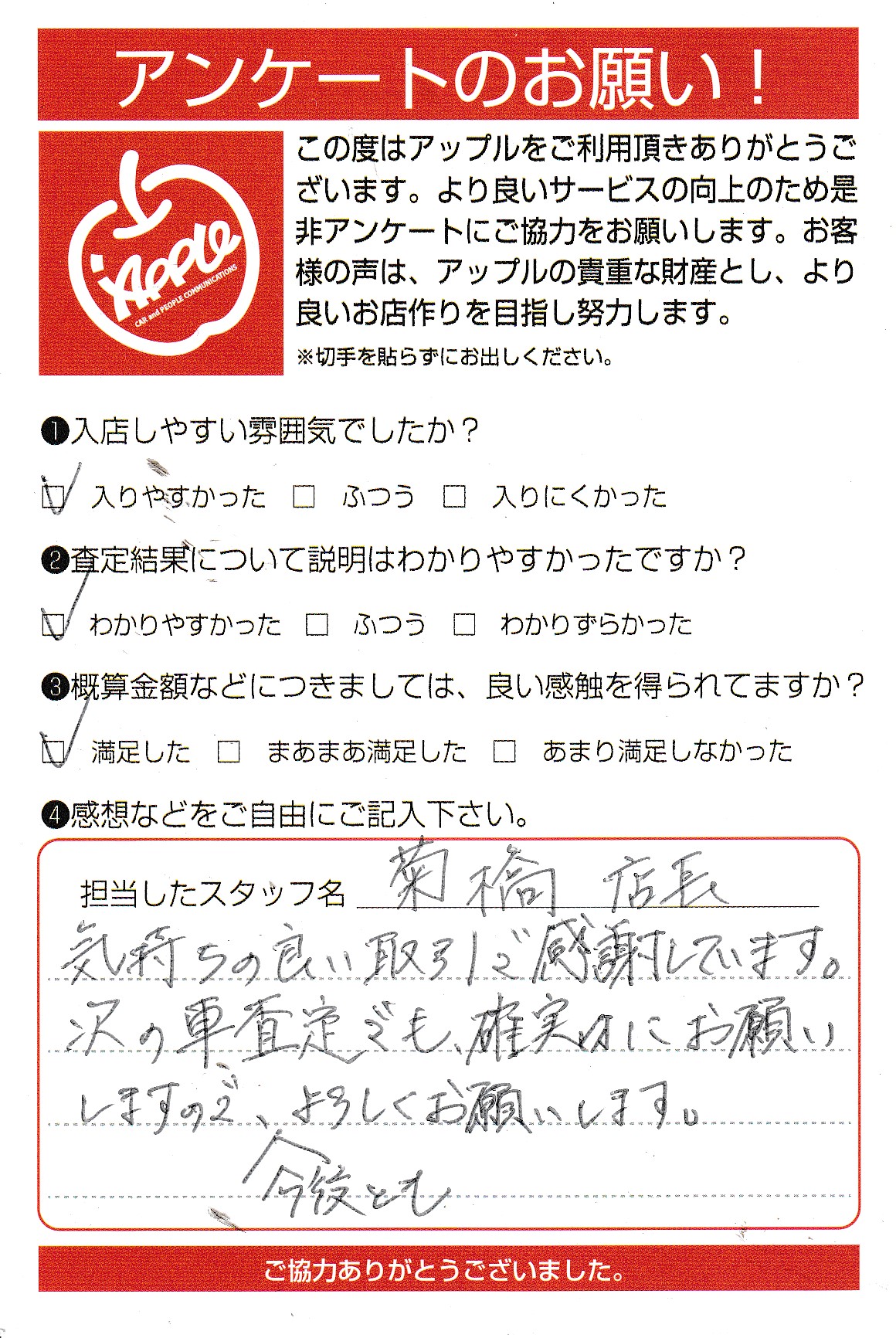 お車のご相談・ 査定だけでもOK! カンタン 入力 30秒 アップルがブランド買取始めました! お電話でも受付中! 受付時間10:00 ~ 19:00 045-828-2588 お車のご相談・ 査定だけでもOK! カンタン 入力 30秒 アップルがブランド買取始めました! お電話でも受付中! 受付時間10:00 ~ 19:00 045-828-2588 アップルがブランド買取始めました! お電話でも受付中! 受付時間10:00 ~ 19:00 045-828-2588 店舗情報 在庫車 スタッフ紹介 ブログ お客様の声 キャンペーン お得 無料査定 click お客様の声 ご記入日: 2022/09/09 S・S様 車名:フォルクスワーゲン ティグアン 【アップルに対する感想をぜひお聞かせください】気持ちの良い取引で感謝しています。次の車査定でも確実にお願いしますので今後ともよろしくお願いします。 前へ 次へ お客様の声一覧を見る
