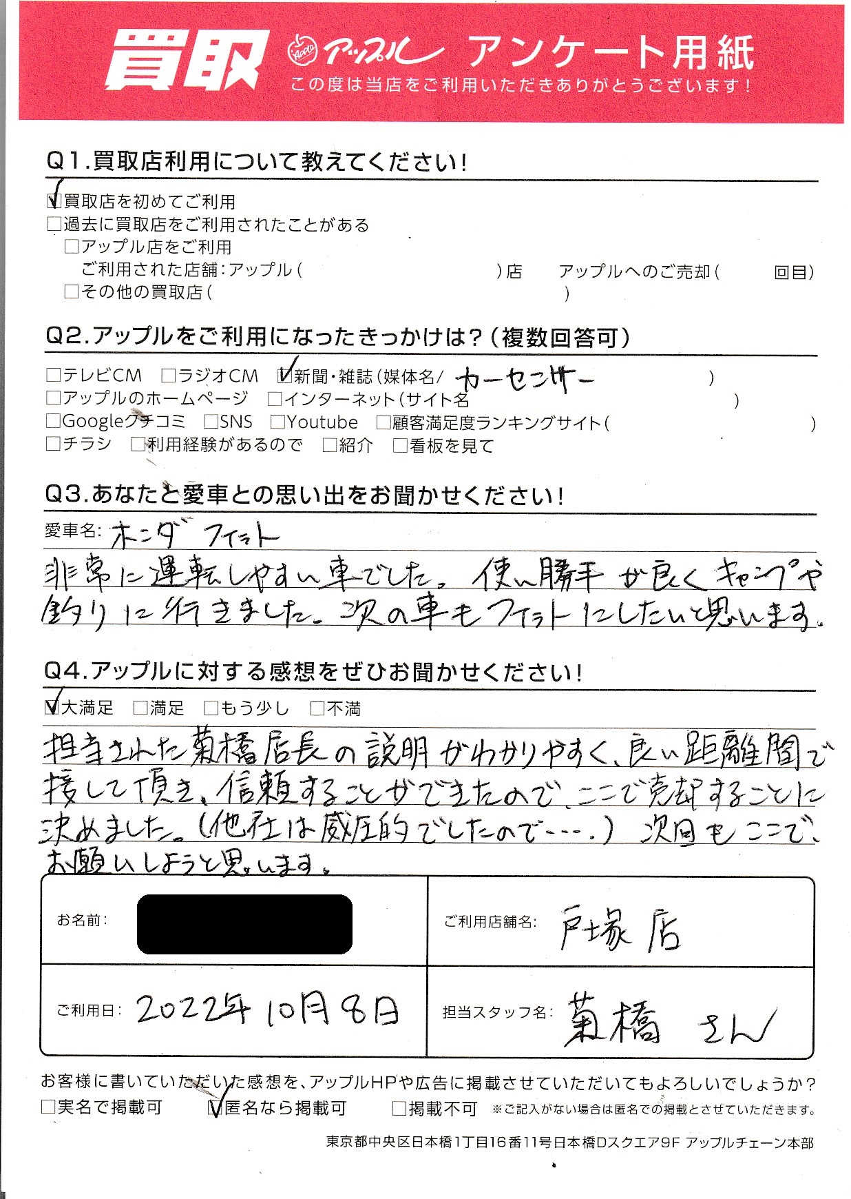 接して頂き、信頼することができたので、ここで売却することに