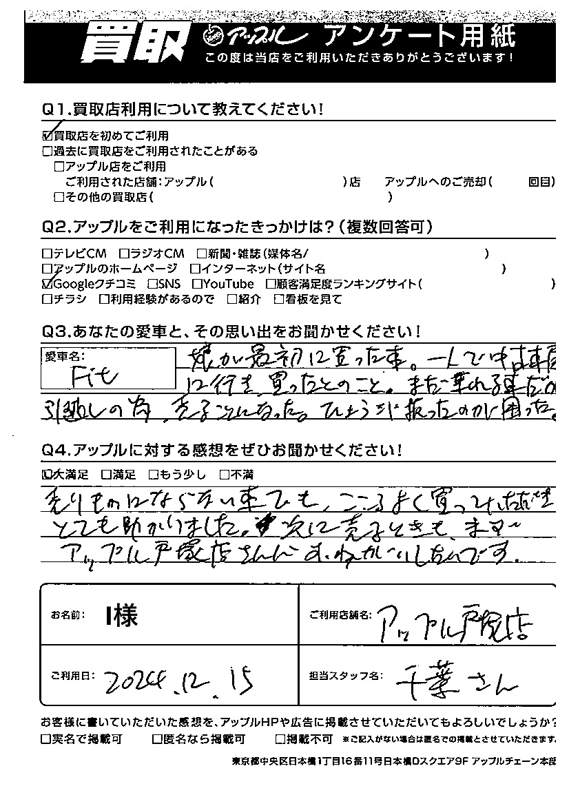 ご利用日:2024/12/15 I 様