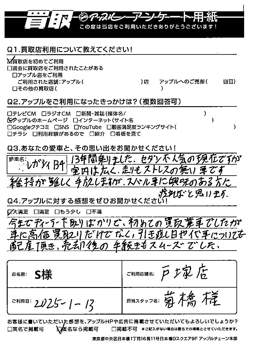 今までディーラー下取りばかりで、初めての買取業者でしたが、逆に高価買取りだけでなく、引き