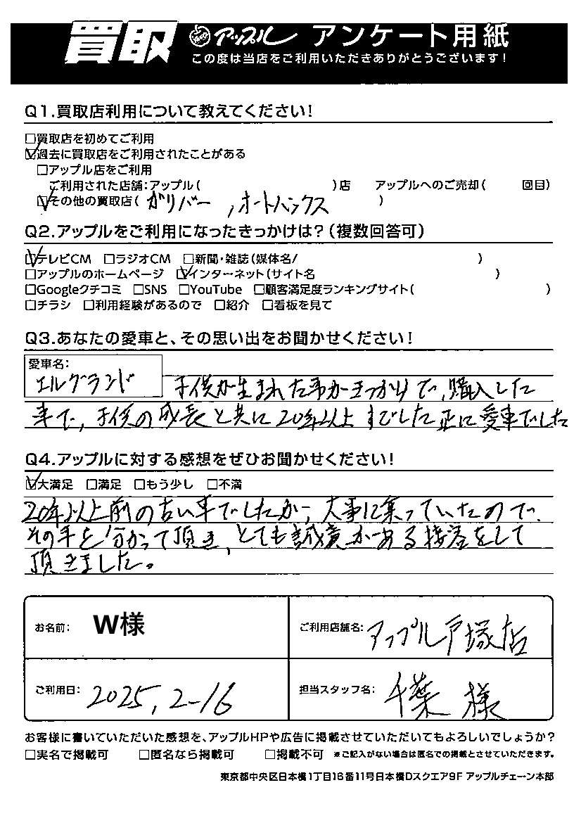 W様 車名:日産 エルグランド