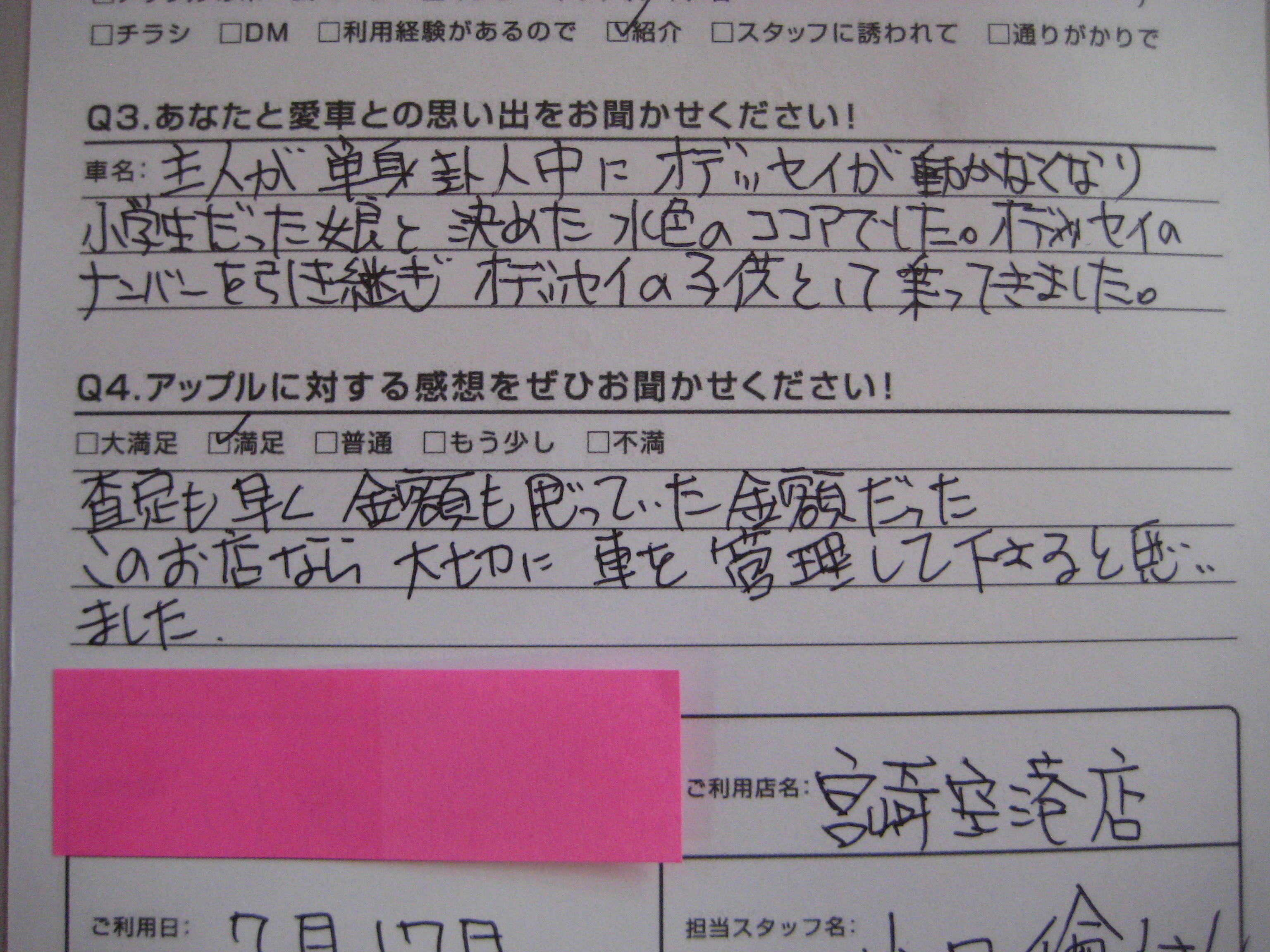 宮崎市 匿名希望K様 車名:ダイハツ ミラココア