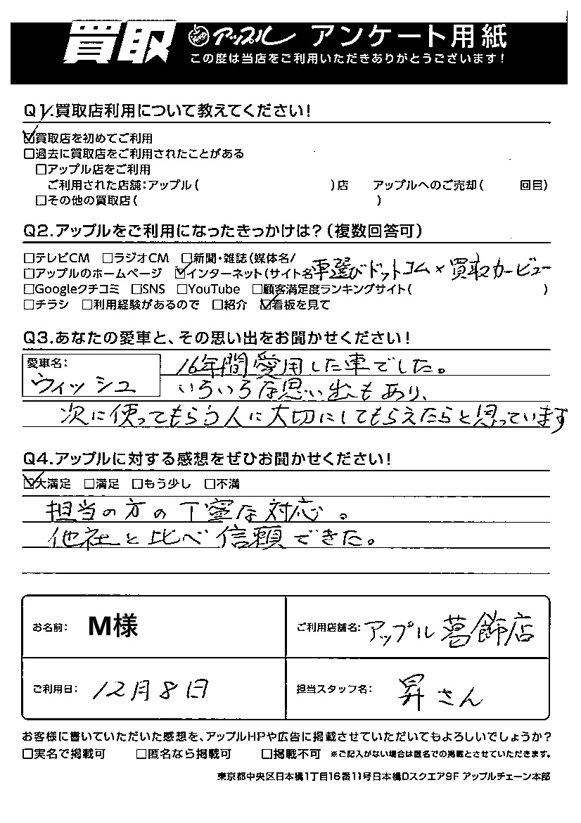 M様 車名:トヨタ ウィッシュ