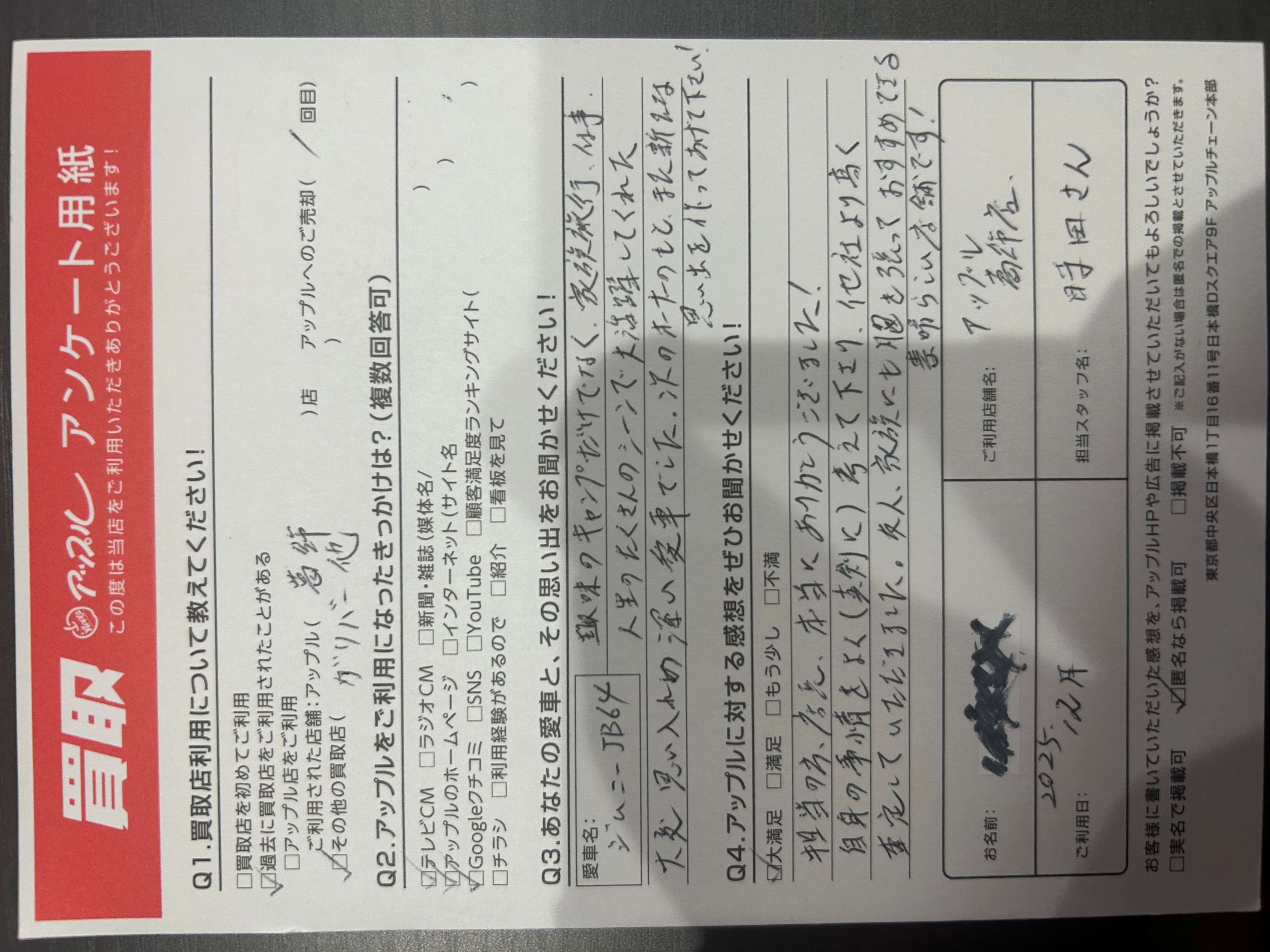お車のご相談・ 査定だけでもOK! カンタン 入力 30秒 アップルがブランド買取始めました! お電話でも受付中! 受付時間10:00~19:00 03-6662-6181 お車のご相談・ 査定だけでもOK! カンタン 入力 30秒 アップルがブランド買取始めました! お電話でも受付中! 受付時間10:00~19:00 03-6662-6181 アップルがブランド買取始めました! お電話でも受付中! 受付時間10:00~19:00 03-6662-6181 店舗情報 在庫車 スタッフ紹介 ブログ お客様の声 キャンペーン 無料査定 click お客様の声 ご記入日: 2025/12/13 S様 車名:スズキ ジムニー 担当の方、店長、本当にありがとうございました!自身の事情をよく(真剣に)考えてくださり、他社より高く査定していただきました。友人、家族にも胸を張っておすすめできる素晴らしい店舗です! 前へ 次へ お客様の声一覧を見る
