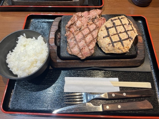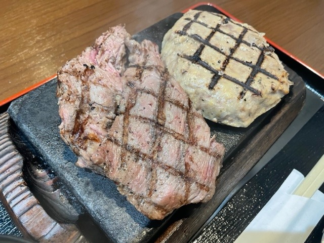 そして実際に頂きましたのがこちらのハンバーグとステーキです(^^♪